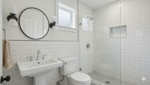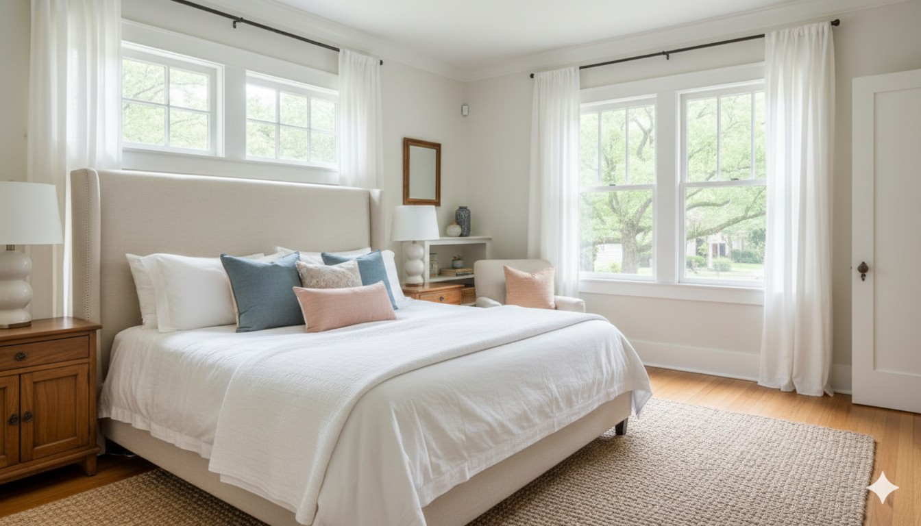 Spacious bedroom with an attached bath, offering both comfort and privacy. The room features ample natural light, creating a relaxing and inviting atmosphere perfect for rest and rejuvenation. The ensuite bathroom provides added convenience and luxury, completing the experience of a private, tranquil retreat.